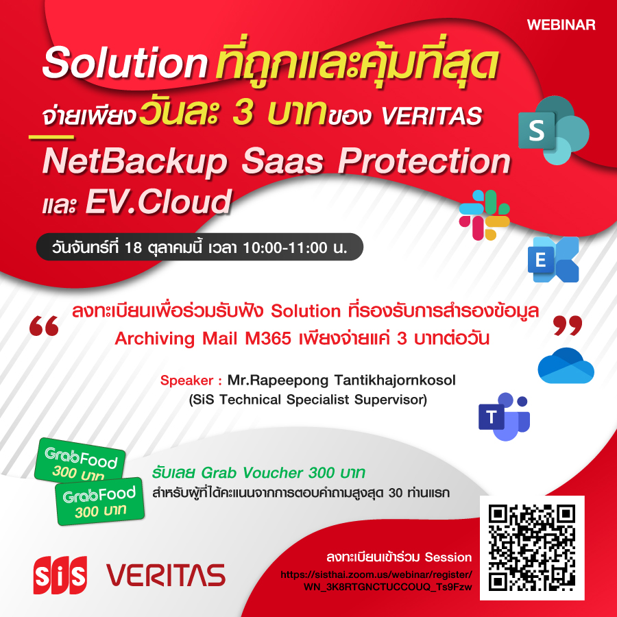 Solution ที่ถูกและคุ้มที่สุดจ่ายเพียงวันละ 3 บาทของ VERITAS NetBackup Saas Protection และ EV.Cloud…