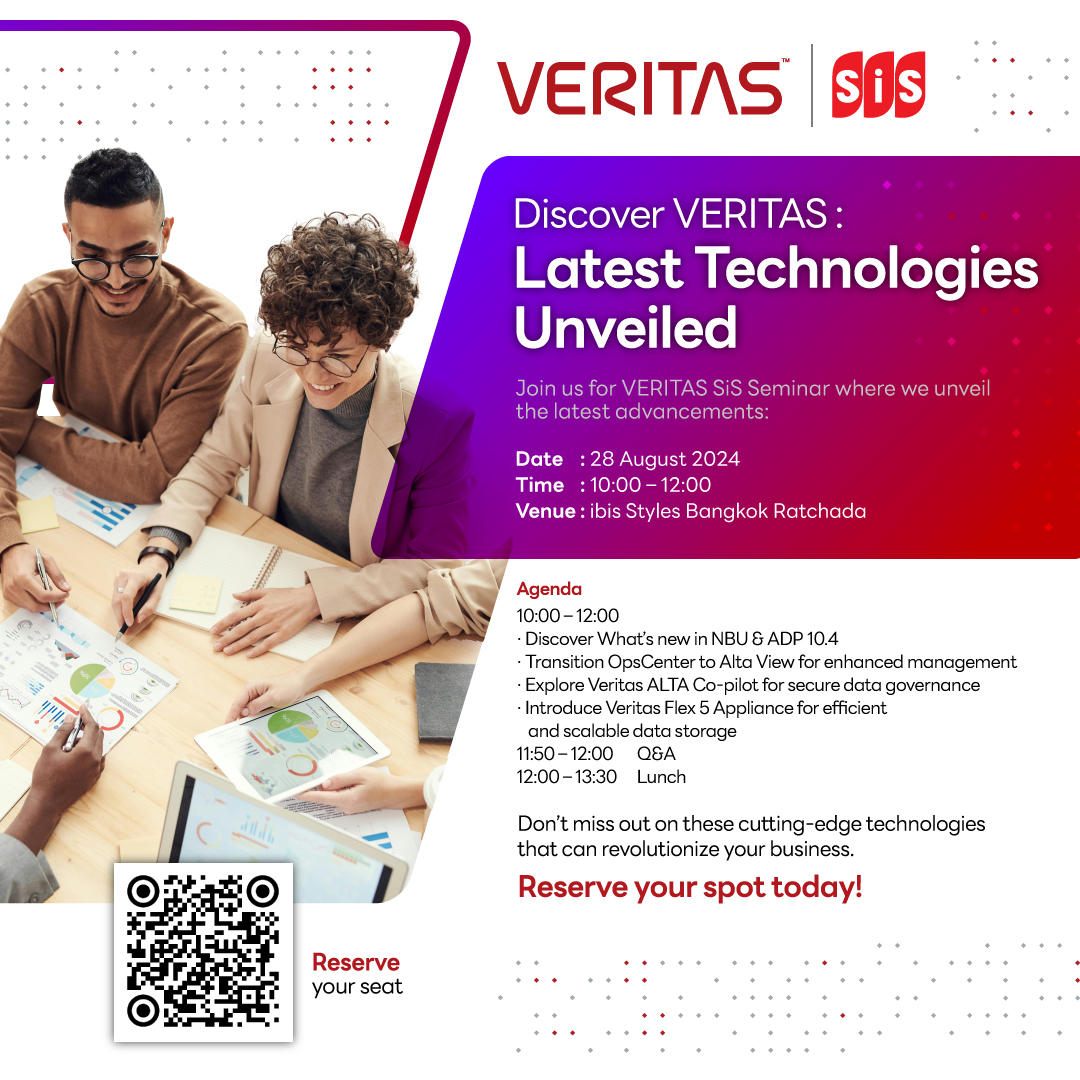 Veritas ขอเชิญ IT Operation, IT Manager และผู้ปฏิบัติหน้าที่ในสาย IT ทุกท่าน เข้าร่วมงานสัมมนาออนไลน์…